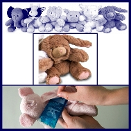 Complete set knuffels met in de knuffel een warm-koud compress wordt tevens geleverd inclusief display.